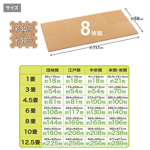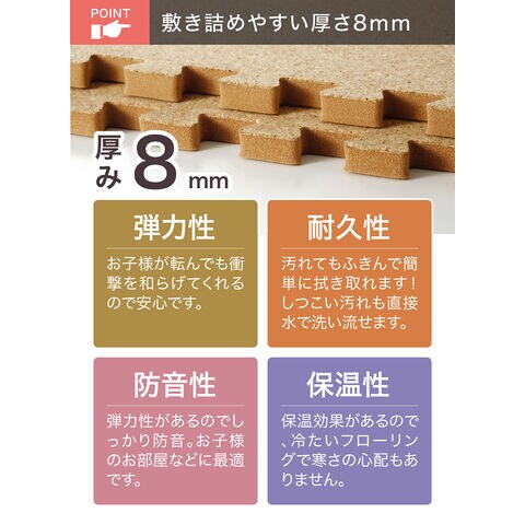 やわらかコルクマット 30cm 8枚組 ナチュレ(コルク細かめ) | プレイマット ベビーマット 防音 PE マット ジョイント つなげる キッズ ペット フロアマット クッション コルク 細かい カットできる 敷き詰め 衝撃吸収 床 保護 床暖房対応