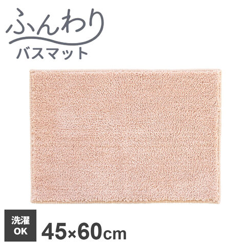 バスマット ふんわりプレーン 45×60cm ピンク | 足ふきマット お風呂マット 無地 シンプル 洗濯機で洗える 丸洗い すべり止め付き ふわふわ かわいい 洗面所 脱衣所 浴室 1人暮らし