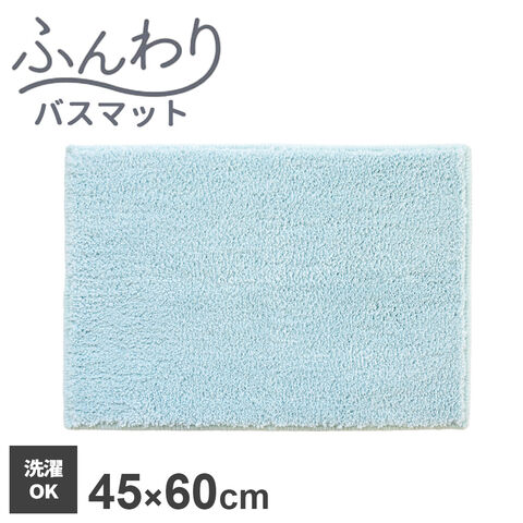 バスマット ふんわりプレーン 45×60cm ブルー | 足ふきマット お風呂マット 無地 シンプル 洗濯機で洗える 丸洗い すべり止め付き ふわふわ かわいい 洗面所 脱衣所 浴室 1人暮らし
