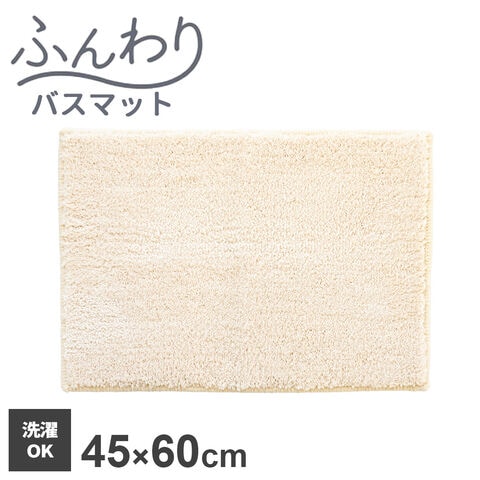 バスマット ふんわりプレーン 45×60cm アイボリー | 足ふきマット お風呂マット 無地 シンプル 洗濯機で洗える 丸洗い すべり止め付き ふわふわ かわいい 洗面所 脱衣所 浴室 1人暮らし