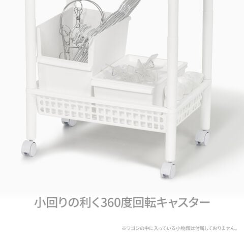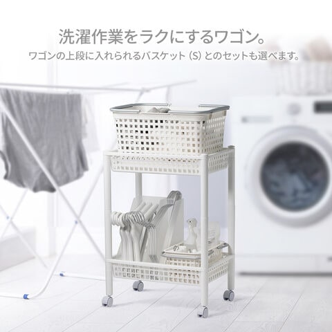 洗濯かごや洗濯に使う小物などをまとめて収納・移動もできる、キャスター付きのワゴン。