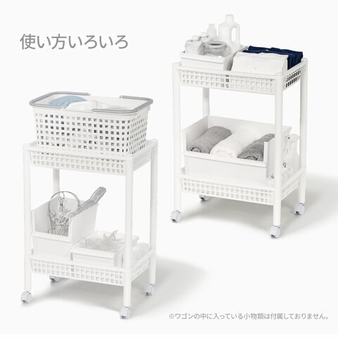 使い方いろいろ上段にはランドリー用バスケットを乗せられ、下段には洗濯用品の収納に使えます。