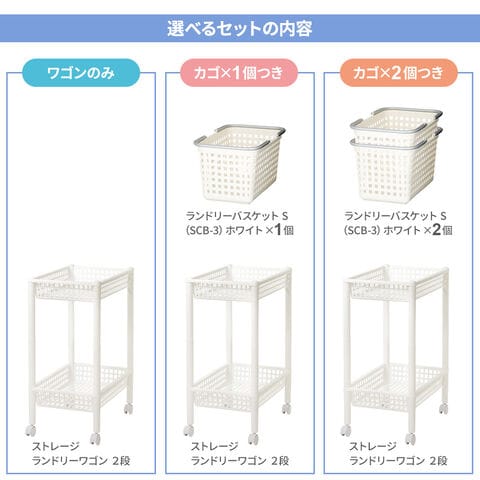 ラック ストレージランドリーワゴン2段 ホワイト | ワゴン 洗濯かご Like-it 洗濯カゴ シンプル 脱衣かご ランドリー ラック おしゃれ 角型 洗濯物入れ 大容量 四角 ライクイット 日本製