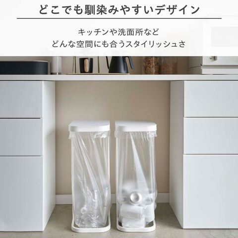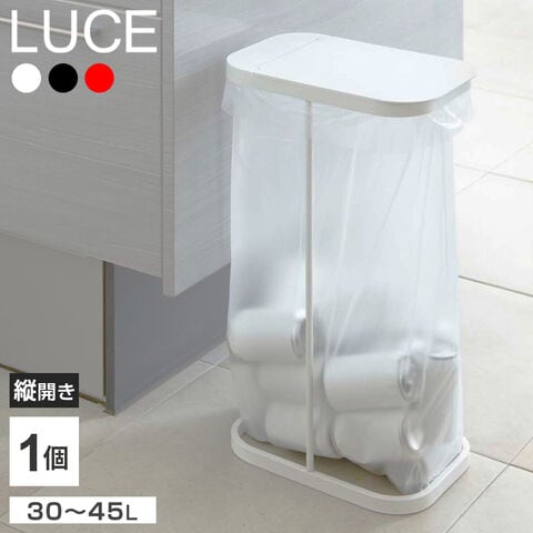 山崎実業 ゴミ箱 LUCE ルーチェ 分別ゴミ袋ホルダー 30~45L ホワイト 7552 | 縦開き ごみ箱 キッチン ダストボックス ふた付き 分別 ゴミ袋 スタンド スリム ペットボトル アルミ缶 シンプル おしゃれ 白 黒