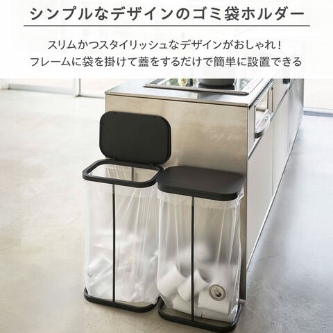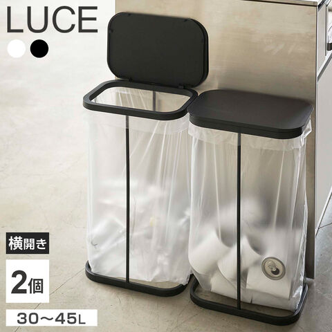 山崎実業 ゴミ箱 LUCE ルーチェ 横開き 分別 ゴミ袋ホルダー 2個セット 30~45L ホワイト×ブラック 4907・4908 | 横型 ごみ箱 キッチン ダストボックス ふた付き 分別 ゴミ袋 スタンド スリム 省スペース ペットボトル アルミ缶 シンプル おしゃれ 白 黒