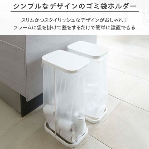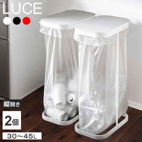 山崎実業 ゴミ箱 LUCE ルーチェ 分別ゴミ袋ホルダー 2個セット 30~45L ホワイト 7552 | 縦開き ごみ箱 キッチン ダストボックス ふた付き 分別 ゴミ袋 スタンド スリム ペットボトル アルミ缶 シンプル おしゃれ 白 黒