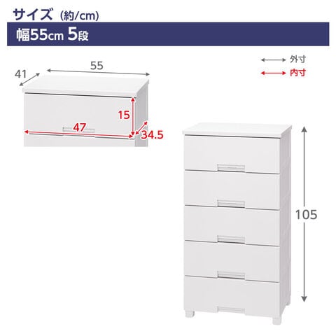 衣類ケース Fits フィッツチェスト 幅55cm 5段 ホワイト 5505 | 天馬 洋服 収納 タンス 収納ケース 衣類収納 洋服ダンス 衣装ケース 引き出し 洋服箪笥 プラスチック