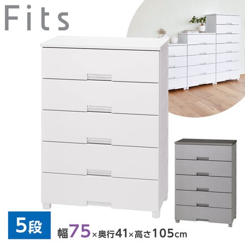 衣類ケース Fits フィッツチェスト 幅75cm 5段 グレー 7505 | 天馬 洋服 収納 タンス 収納ケース 衣類収納 洋服ダンス 衣装ケース 引き出し 洋服箪笥 プラスチック