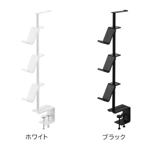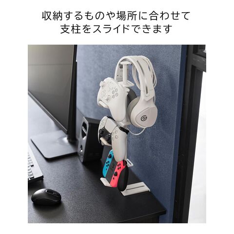山崎実業 デスク奥 ゲームコントローラー 収納ラック ホワイト 10428 | smart スマート コントローラーラック コントローラー収納 デスク奥 フチ はさんで固定 調節ネジ リングライト設置 WEBカメラ設置 ヘッドホン ケーブル収納 充電ケーブル まとめて収納 白 黒