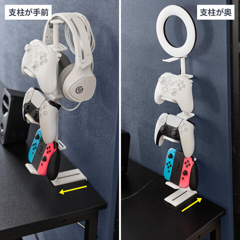 最上段にヘッドセットを収納するときに支柱を手前にスライドすれば、壁に干渉せずにスッキリ収納できます。