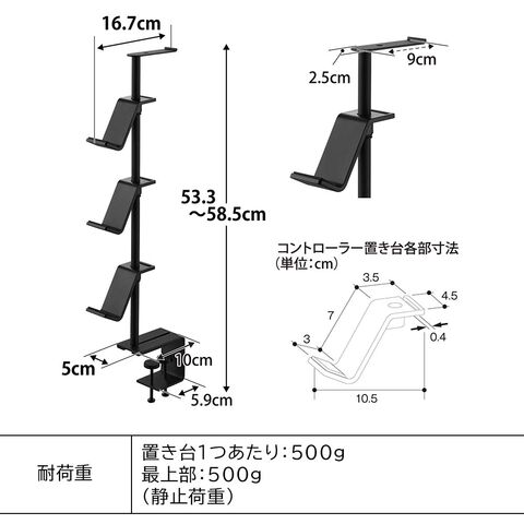 材質:本体/スチール(粉体塗装) コントローラー置き台×3/ABS樹脂 ストッパー・緩衝材/シリコーンゴム