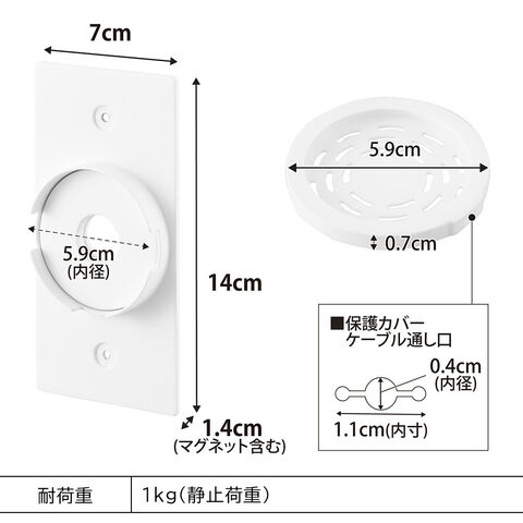 内寸サイズ(約):ホルダー部/内径5.9cm 保護カバーケーブル通し口/W1.1cm・内径4mm