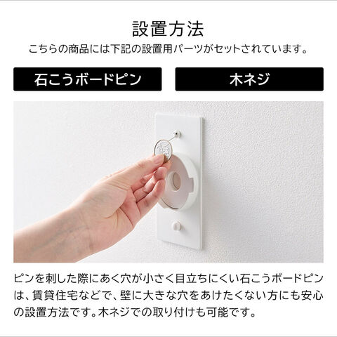 付属の石こうボードピンや木ネジで簡単に設置できる、置き場所のいらない壁掛けタイプ。