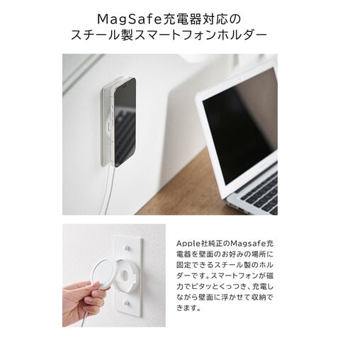 Apple社純正のMagsafe充電器を壁面のお好みの場所に固定できるスチール製のホルダーです。