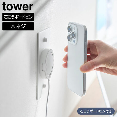 ウォールスマートフォン充電ホルダー タワー 石こうボード壁対応 山崎実業 tower ホワイト ブラック 10084 10085 | ワイヤレス充電 ワイヤレス充電器 スマホスタンド 充電スタンド MagSafe対応 ワイヤレスチャージャー yamazaki タワーシリーズ