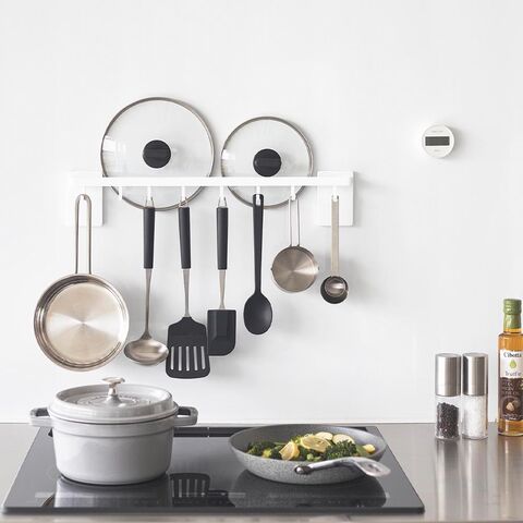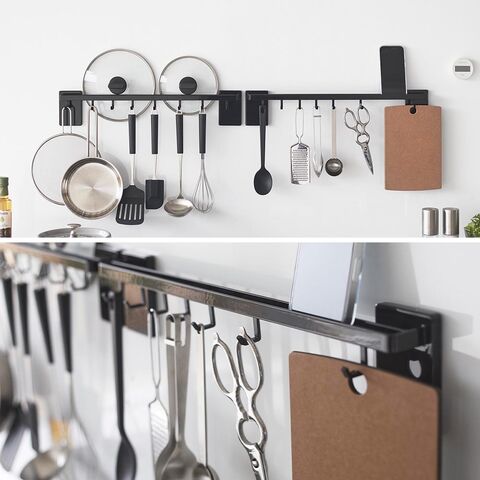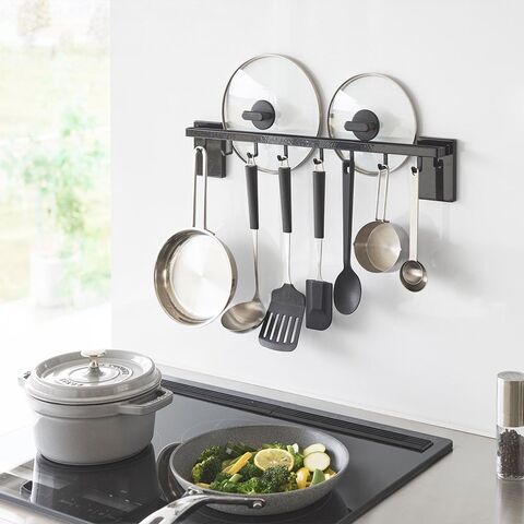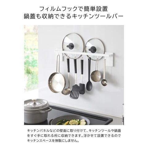 フィルムフックで簡単設置 鍋蓋も一緒に収納できる キッチンツールバー