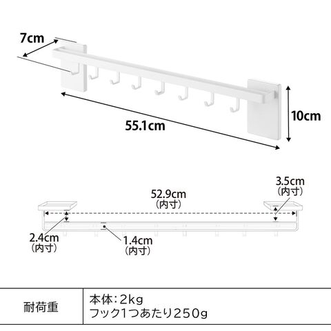 スペック商品サイズ(約):W55.1×D7×H10cm(フィルムフック含まず) フィルムフック接着面/W6.5×H10cm(1つあたり)