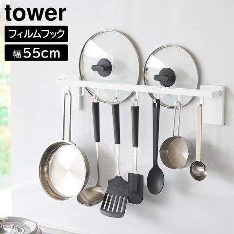 フィルムフック鍋蓋も収納できるキッチンツールバーフック付き タワー W55 山崎実業 tower 幅55cm ホワイト ブラック 10412 10413 | 浮かせる収納 鍋蓋 キッチンツール 収納 山崎実業 yamazaki