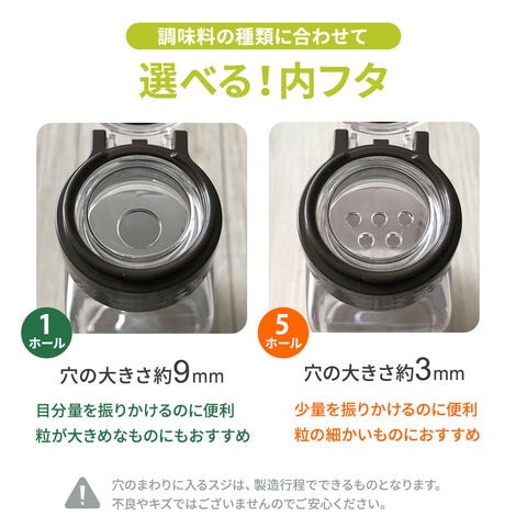 選べる内フタ 1ホール・5ホール調味料の種類に合わせて、1穴・5穴を選べます。
