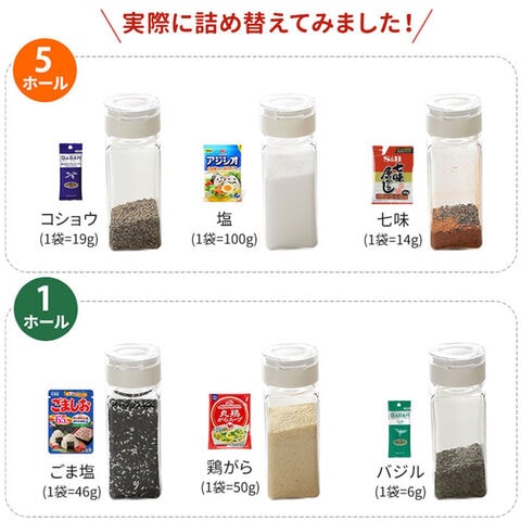 塩少々などには5穴 目分量で良いものには1穴がおすすめ。