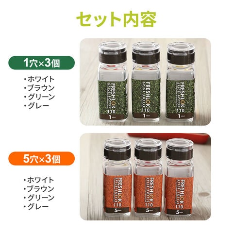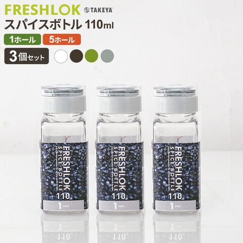 フレッシュロック スパイスボトル 5ホール 110ml グレー 3個セット | 調味料ケース 保存容器 密閉 詰め替え ボトル 透明 プラスチック キッチン 収納 塩 胡椒 5穴 FRESHLOK TAKEYA タケヤ