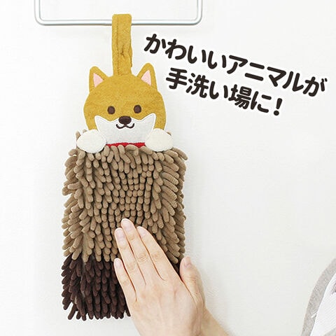 動物マスコットがかわいい、吊り下げ紐付きモールタオル。