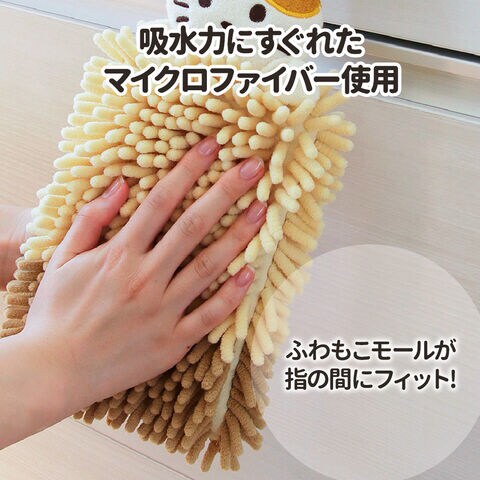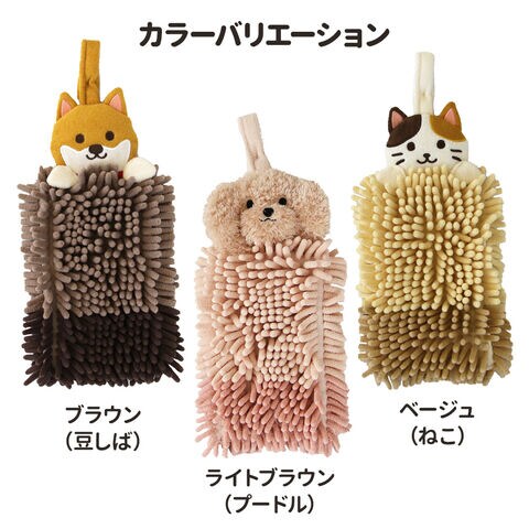 お手ふきタオル ファンディットアニマル モールタオル ベージュ(ねこ) | ねこ お手拭き タオル アニマル 洗面所 キッチン 吸水 速乾 動物 マスコット かわいい ぬいぐるみ もこもこ マイクロファイバー 子供 キッズ 吊り下げ ハンドタオル 紐付き ループタオル