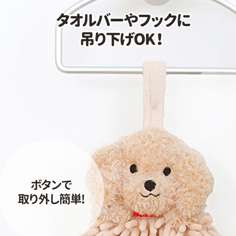 タオルバーやフックに吊り下げOK吊り下げ紐はボタンで取り外しカンタン。