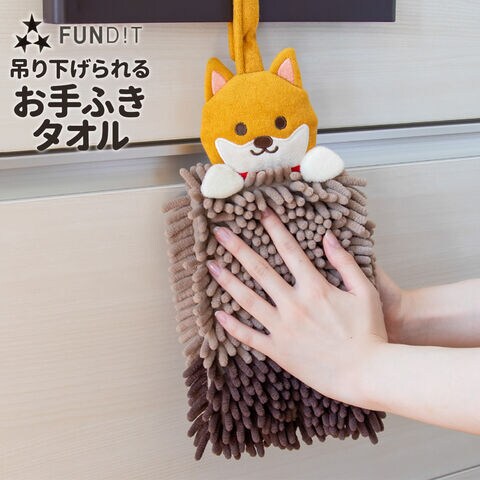 お手ふきタオル ファンディットアニマル モールタオル ブラウン(豆しば) | 豆しば お手拭き タオル アニマル 洗面所 キッチン 吸水 速乾 動物 マスコット かわいい ぬいぐるみ もこもこ マイクロファイバー 子供 キッズ 吊り下げ ハンドタオル 紐付き ループタオル