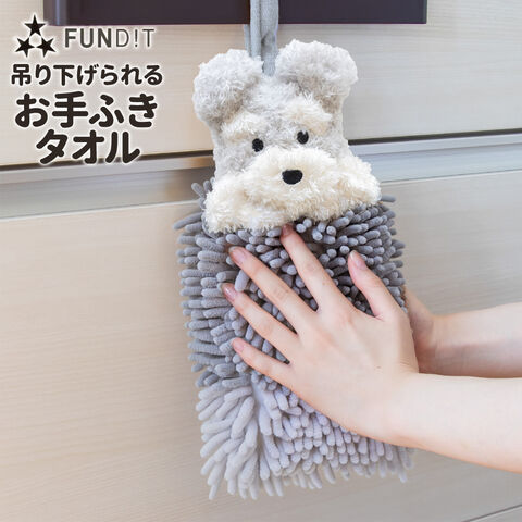 お手ふきタオル ファンディットアニマル モールタオル ブラウン / ライトブラウン / ベージュ / グレー | ループタオル 犬 猫 マスコット もこもこ お手拭き タオル アニマル 豆しば プードル ねこ シュナウザー 洗面所 キッチン 吸水 速乾 動物