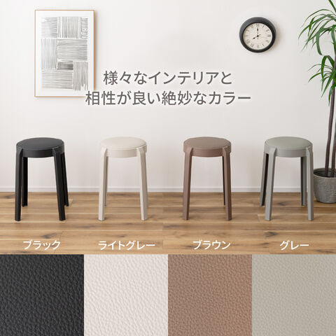 椅子 スタッキング スツール グレー PC-734 | イス いす おしゃれ かわいい スタッキング 積み重ね 丸型 丸椅子 チェア チェアー クッション 合皮 高さ49cm キッチン リビング ダイニング シンプル ドレッサー 来客