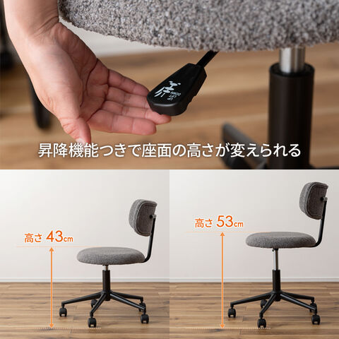 うれしい機能昇降機能がついているので、座面高さが43~53cmに変えられます。
