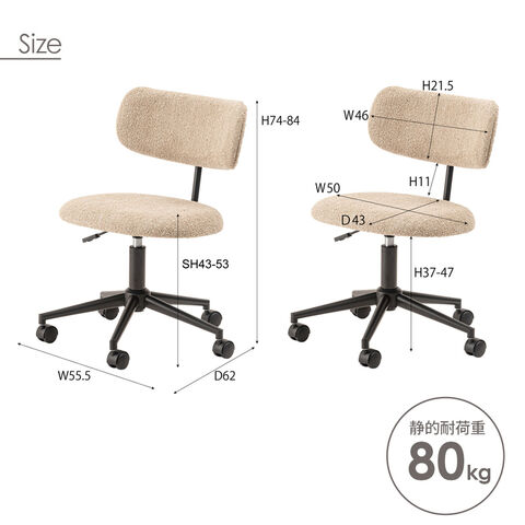 スペックサイズ(約):幅55.5×奥行62×高さ74~84cm