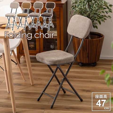 折りたたみ椅子 フォールディング チェア グレー PC-52 | パイプ椅子 おしゃれ かわいい ファブリック 布 ナチュラル いす イス 折り畳み コンパクト 座面47cm 隙間収納 背もたれ キッチン リビング ダイニング 来客 パイプチェア シンプル