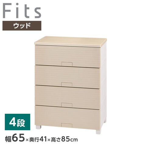 衣類ケース Fits フィッツチェスト ウッド 幅65cm 4段 ベージュ 6504 | 天馬 洋服 収納 タンス 収納ケース 衣類収納 洋服ダンス 衣装ケース 引き出し 洋服箪笥 プラスチック 木目調