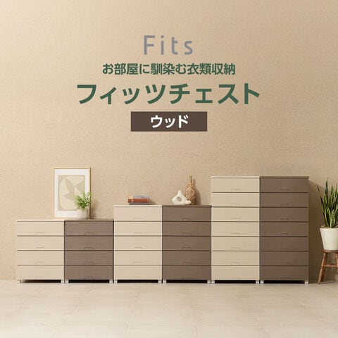 マットな木目調の質感が特長。引出し取っ手がフラットでスッキリとした「フィッツチェスト ウッド」シリーズ。