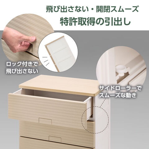 ご注意この製品の主用途は衣類収納用チェストです。書籍や紙類などの、過度に重いものを収納しないでください。