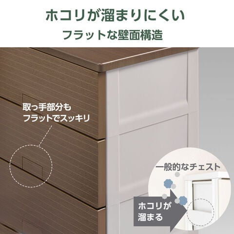 ホコリがたまりにくい構造側面・背面はフラットな壁構造で、ホコリが入りにくくなっています。掃除の手間がなく、衣類もきれいにしまっておけます。