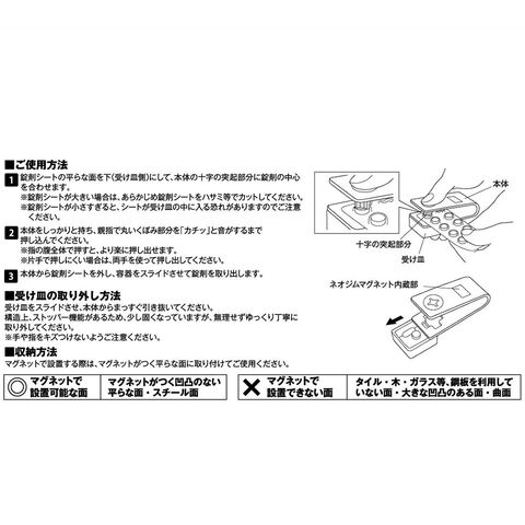 材質:本体/PET-G樹脂 ネオジムマグネット 受け皿/ABS樹脂 耐熱 本体/70℃ 受け皿/100℃ 耐冷 本体・受け皿/-40℃