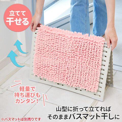 バスマット下の湿りを防ぎ、使用後はそのまま立ててバスマット干しにもなる折りたたみスノコ。