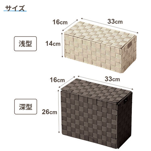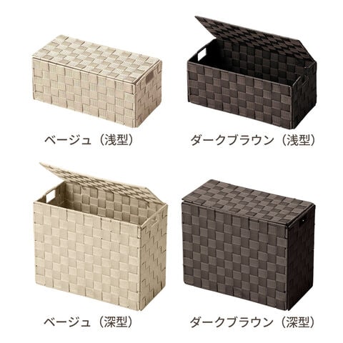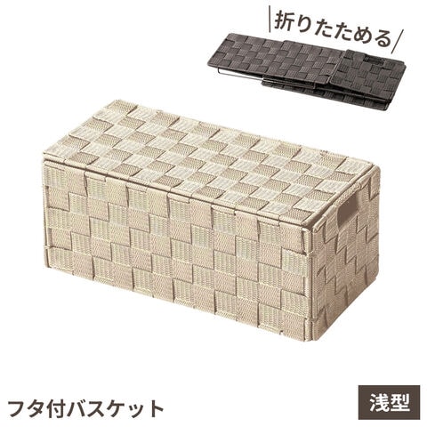 フタ付き折りたたみ式バスケット 浅型 ベージュ | 収納ボックス 編みかご 蓋付き 浅型 深型 折りたたみ おしゃれ ナチュラル 手編み カゴ ケース 目隠し収納 掃除道具 スリッパ 小物入れ ランドリー トイレ リビング 玄関