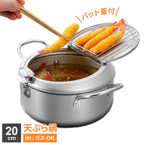 IH対応 バットふた付 てんぷら鍋 20cm ミントグリーン / シルバー | 天ぷら 揚げ物 串揚げ フライ バット 蓋付き油温計 フライヤー 小さめ コンパクト 揚げ鍋 油跳ね ガード付き セラミックコート おしゃれ 少人数 2~4人