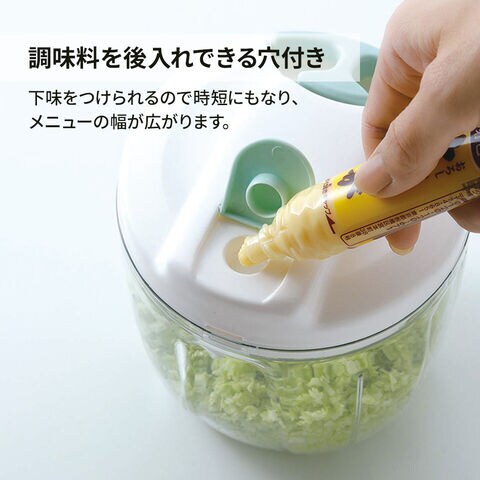 食材を中に入れてヒモを引っぱるだけで、簡単にみじん切りができるハンドチョッパー。
