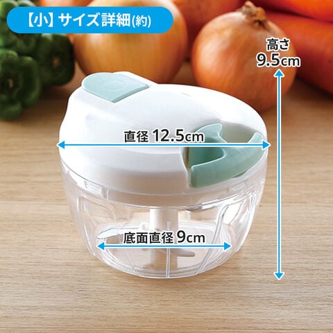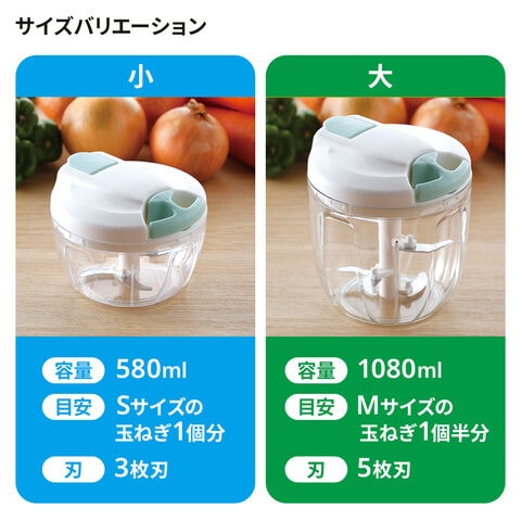 選べる2サイズ【小】Sサイズの玉ねぎ1個分が入る3枚刃のミニサイズ。少人数のご家庭など、少量調理にぴったり。