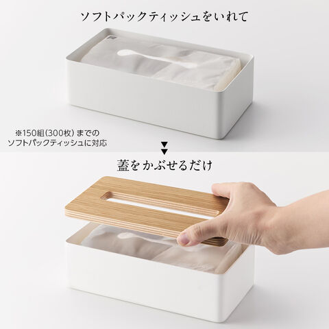 ソフトパックのティッシュをスタイリッシュに収納します。