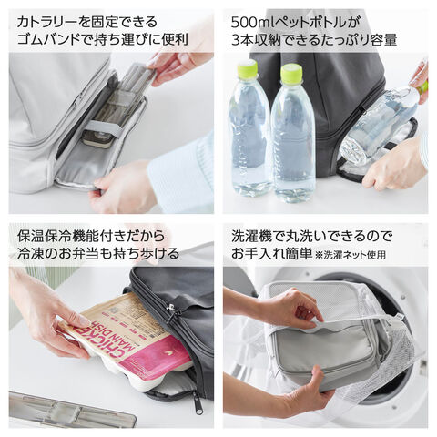 ご注意「保温・保冷機能」「丸洗いが可能」は、下段バッグのみの仕様です。