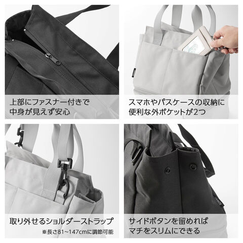 山崎実業 tower タワー セパレートできる 横からパッとランチバッグ ライトグレー 10727 / ブラック 10728 | 保冷バッグ 弁当袋 コンビニ弁当 1段 弁当箱 持ち運び お惣菜 パック容器 セパレート 通勤 外ポケット かばん ショルダーバッグ 斜め掛け シンプル おしゃれ 洗える