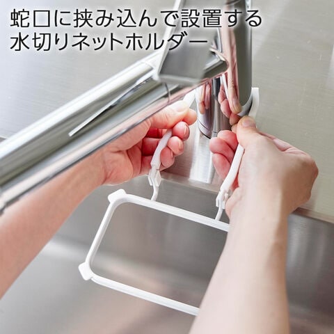 蛇口に挟み込むだけで取り付けられる、水切りネットホルダー。