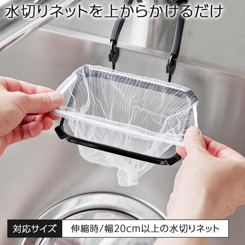 対応サイズ(約):伸長時/幅20cm以上の水切りネット ※水切りネットのサイズや形状によっては取り付けられない場合があります。