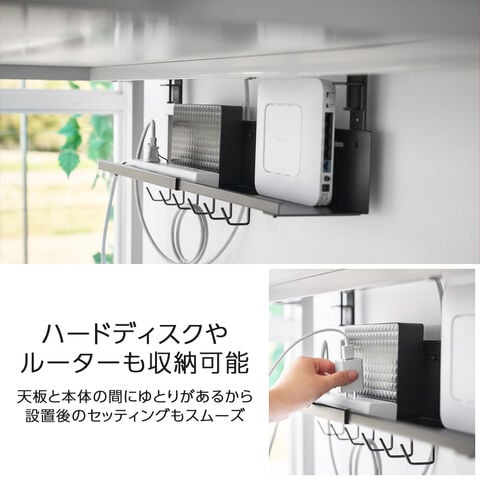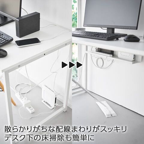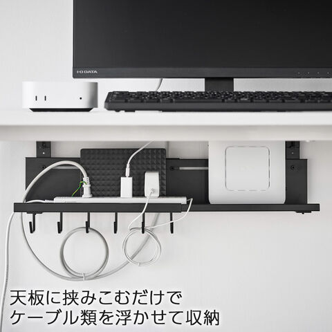 散らかりがちなケーブルやタップ類を浮かせて収納できます。